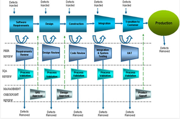 Self reviews, Peer reviews, SQA reviews, Management Checkpoint Reviews.